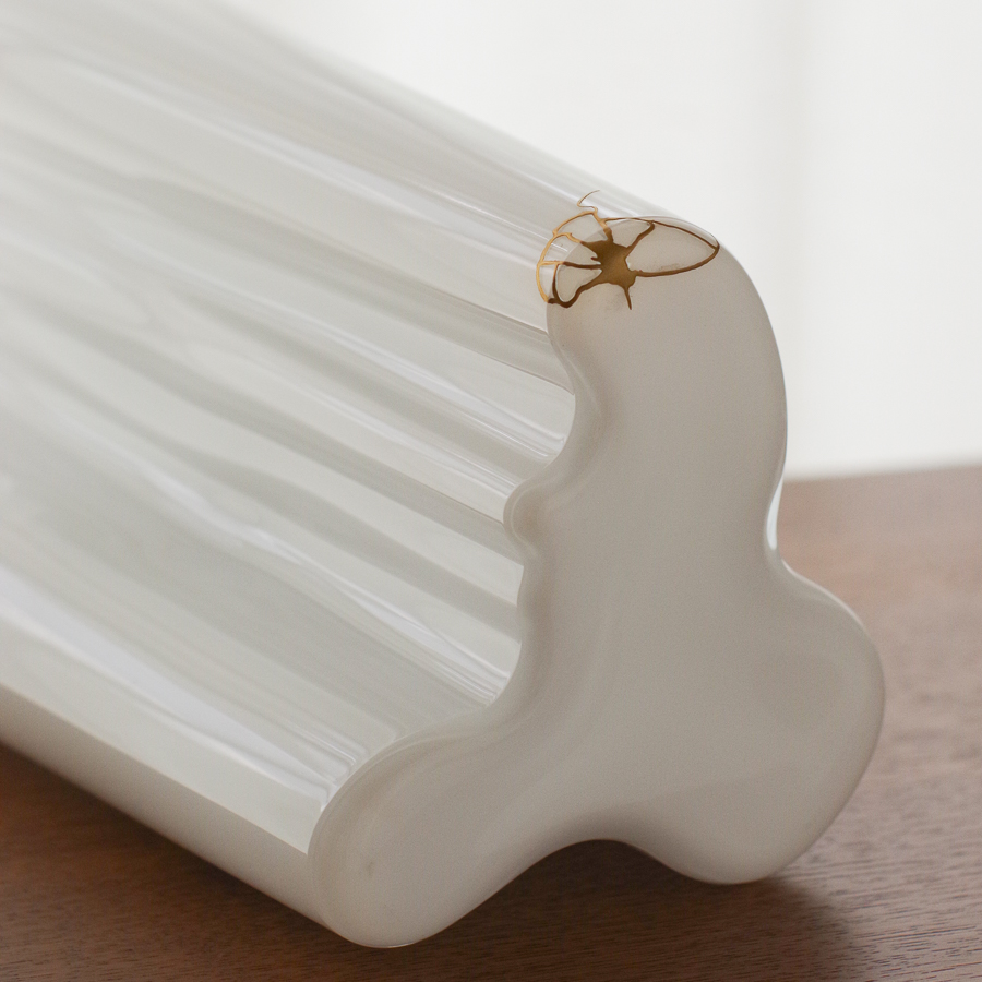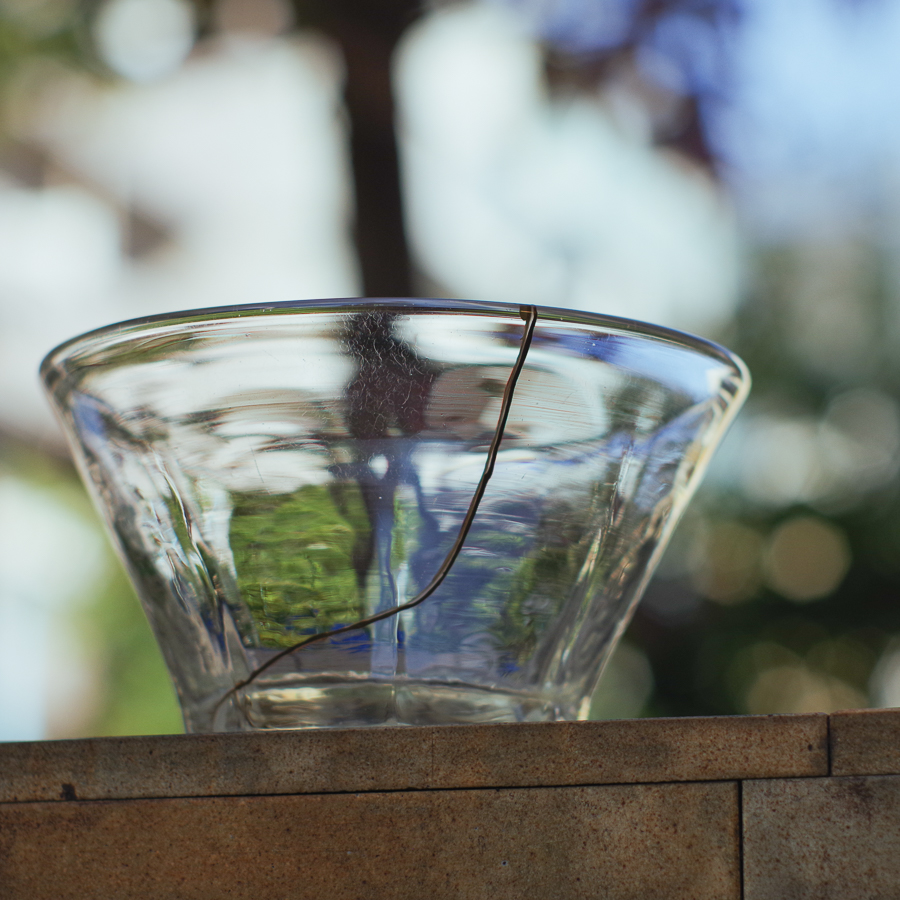 ガラスは漆の食いつきが良くないのでエポキシ樹脂で接着してから金継ぎする場合が多いです。